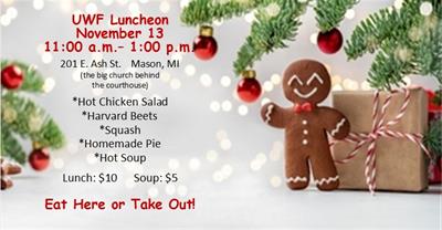 Thursday, November 13, 2025 Mason First United Methodist Church Varies based on purchase