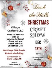Saturday December 13, 10-4pm Grand Ledge Public Schools Administration Building 220 Lamson St Grand Ledge MI 48837 ***New Location *** Come join us for our last Christmas Craft Show of the year, in a new location. Enter in Door #8 off the parking lot on Jenne St. Finish that last minute shopping and find that extra special gift you didn't even know you needed! From home to holiday decor, candies to cookies, candles to soaps, scarves to towels and everything in between... you'll have plenty to choose. Have fun participating in our holiday scavenger hunt...there are prizes to be won! Bring the kids for kids crafts and let them write that letter to Santa! Our Community Service for this event is GLEAP, Grand Ledge Emergency Assistance Program. We will be collected non-perishable food, paper products and personal care items. "It Takes a Village!"