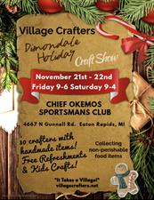11/21/2025 9-4 11/22/2025 9-4 Chief Okemos Sportmen Club 4667 N Gunnell Rd Diamondale MI 48821 Friday 9-6 and Saturday 9-4 30+ crafters with all handmade items waiting for you to take them home! We have all the ABC's plus some... Artists & Authors... Bakers & Beaders... Crafters & Crocheters and the list goes on and on! We will have free refreshments for guests, free gift wrapping upon request, and free kids crafts with letters to Santa! Again this year... receive a raffle ticket for every $10- spent at a booth. You could be the lucky winner of 1 of the 2 drawings. First drawing is for $100- in Michigan Lottery tickets and the Second drawing is for $50- in Michigan Lottery tickets. We will be collecting non-perishable food items for the food bank. For more information contact Village Crafters through email @ villagecraftersonly@outlook.com and visit our website villagecrafters.net. "It Takes a Village!"