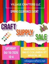 4/18/2026 10-4pm Artists, Crafters, Makers, Bakers and all of you DIY'ers...come take advantage of these clearance prices! As usual we have way more craft supplies we need or will ever use! You will find fabric, yarn and wreath making supplies... candy molds, cake decorating and cookie cutters galore... beads, jewelry wire, crystals and gems, and way more than I could ever list here! We will be collecting items for the Ingham County Animal Control. Free refreshments for Guests.